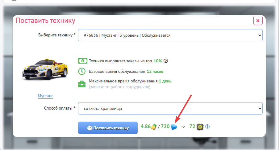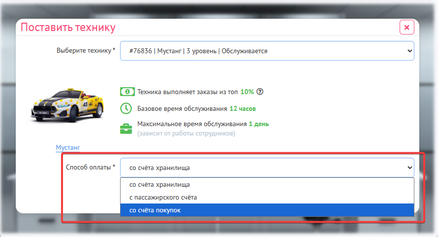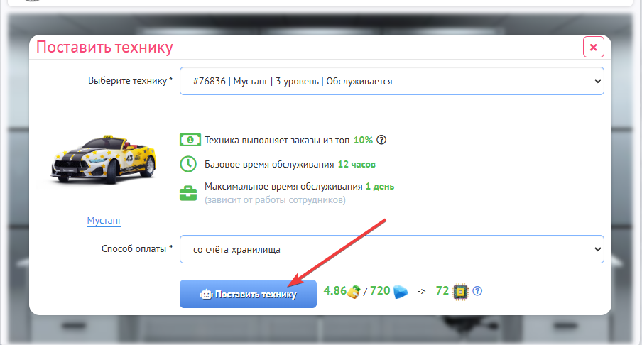 После чего Вам нужно будет нажать “Поставить технику”