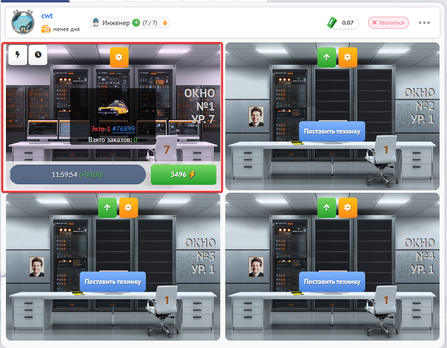 Владелец “Дата центра” может ограничивать типы оплаты и уровень обслуживаемой техники в каждом окне, а также выставлять наценку на услугу