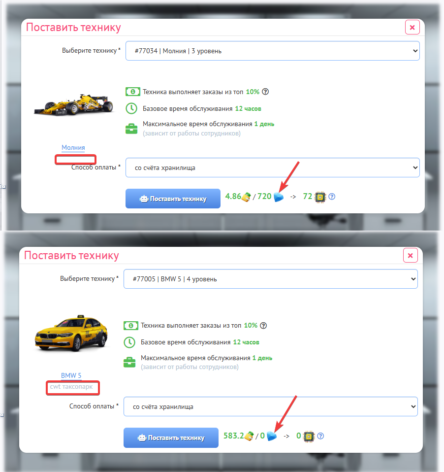 Вне зависимости от счета оплаты Вы будете получать прибыль исходя из того, трудоустроена Ваша техника или нет. Например, если такси трудоустроено, то оно будет выполнять Рабочие/Элитные заказы/Поиски , привозя прибыль на счет компании. Если такси не трудоустроено, то она будет выполнять Халтурные/Конкурсные заказы/Поиски, привозя прибыль на Ваш “Счет вывода”